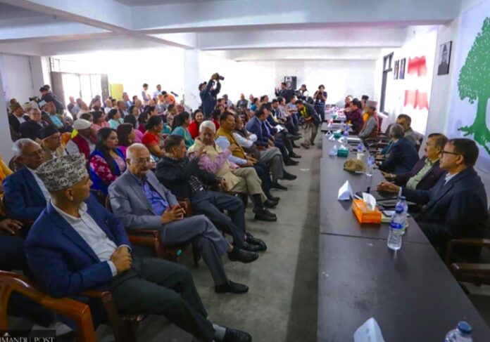 Acting party president Purna Bahadur Khadka, general secretaries Gagan Thapa, Bishwa Prakash Sharma, Shekhar Koirala, Ramesh Lekhak, Bimalendra Nidhi, and Krishna Prasad Sitaula, among others, sat for a meeting with Deuba on Saturday.